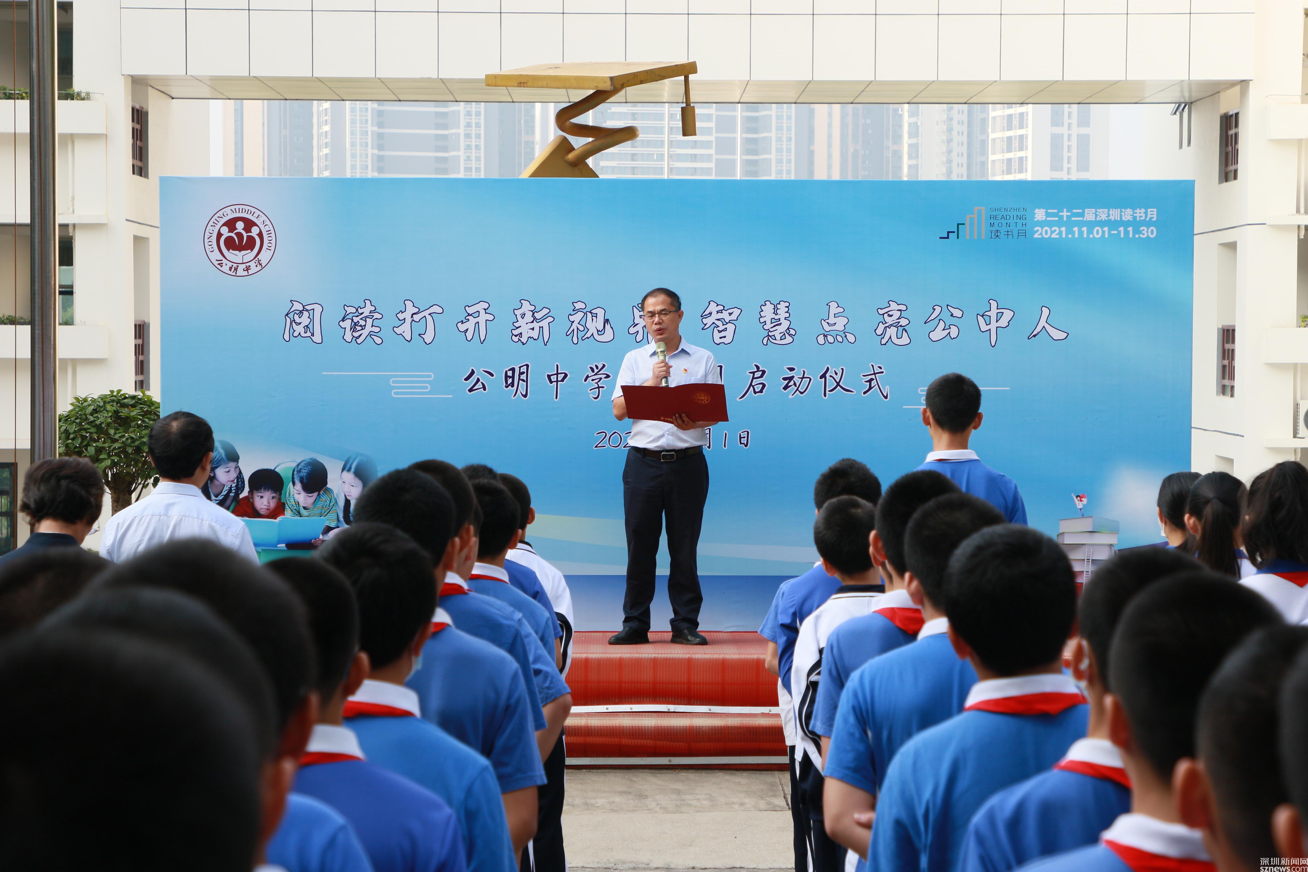 “公明中學(xué)將用閱讀賦予校園知書達(dá)理的文化氣息,用知識開闊眼界,用經(jīng)典浸潤心靈,用書為伴博覽同行?!比A建明校長指出,深圳正傾力打造具有世界影響力的閱讀文化品牌,公明中學(xué)將以深圳讀書月為依托,由黨員、行政帶頭學(xué)習(xí),做讀書活動(dòng)的組織者、參與者和引導(dǎo)者,做師生學(xué)習(xí)的表率,鼓勵(lì)師生愛讀書,讀好書,學(xué)會(huì)讀書,在閱讀中發(fā)揮“恒、勤、思、用”的精神,引導(dǎo)閱讀文化向縱深發(fā)展,在全校形成“專家指導(dǎo)、陣地支持、全員參與”的讀書格局,增厚公中文化底蘊(yùn)。