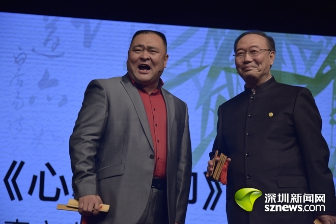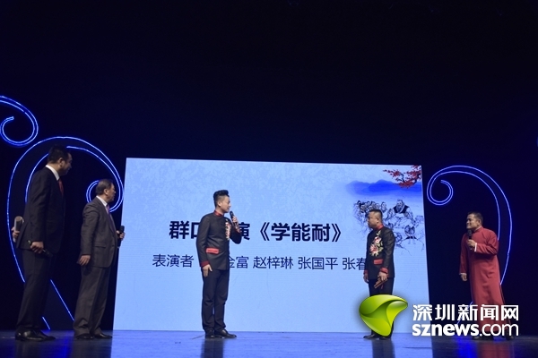 其后還有中國快板藝術(shù)委員會主任、著名快板書表演藝術(shù)家、非物質(zhì)文化遺產(chǎn)傳承人、中國曲藝牡丹獎得主李少杰帶來的經(jīng)典快板《天安門廣場看升旗》,質(zhì)樸的詞句,充沛的情感,以看升旗為出發(fā)點(diǎn),表達(dá)的都是對國家的熱愛;古文新說題材的相聲《趣說文言文》,帶來了頗為新鮮的體驗;還有以深圳市鹽田區(qū)抗戰(zhàn)時期的真人真事改編的評書《龍嘴兒》、傳統(tǒng)相聲《大保鏢》和《學(xué)歌曲》等,曲種豐富多樣,令全場掌聲雷動,觀眾們贊不絕口。