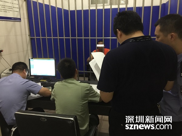 深圳公安對(duì)抓獲犯罪嫌疑人楊某進(jìn)行訊問(wèn)