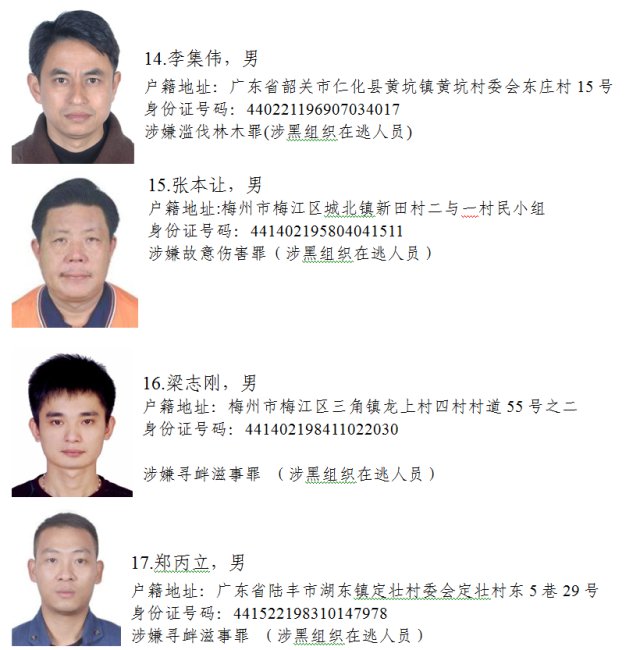 懸賞通緝!廣東這50名黑惡勢力嫌犯在逃