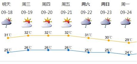 18-22日我市大致多云,間中有(雷)陣雨,天氣趨于炎熱。