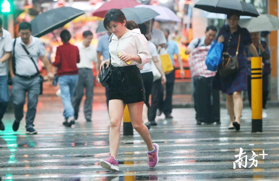 10月10日,受冷空氣影響,深圳降溫又降雨。在羅湖區(qū)街頭,傍晚時分涼意撲面而來,許多行人添上衣物,在冷風細雨中匆匆前行。南方日報記者 朱洪波 攝影報道