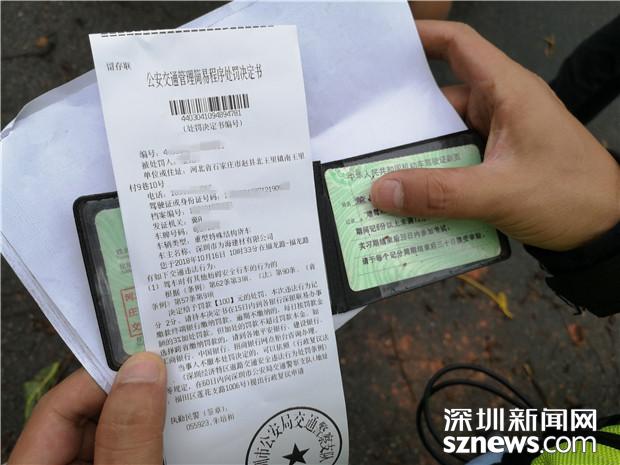 深圳交警對泥罐車司機(jī)開出罰單:罰款100元扣2分
