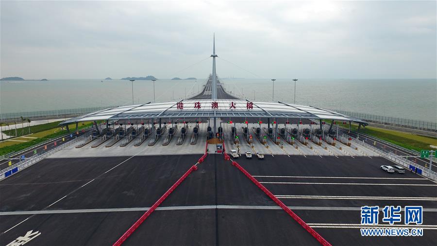 這是港珠澳大橋收費廣場(10月20日無人機(jī)拍攝)。 新華社記者吳魯攝