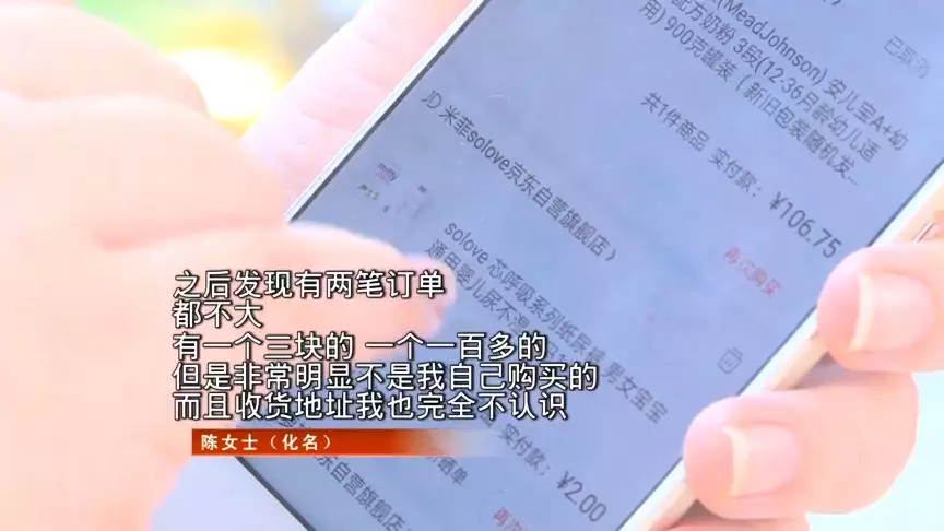陳女士表示,昨天上午看到已派送的兩個(gè)訂單,有奶粉和尿不濕,這都不是自己購(gòu)買的。