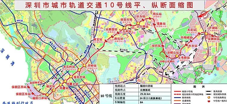 地鐵10號(hào)線全長29.2千米,起自福田區(qū)福田口岸站,終至龍崗區(qū)平湖中心站,南北向貫穿深圳市區(qū),全部采用地下敷設(shè)方式。