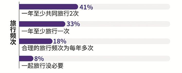 而在共同旅行方面,41%認(rèn)為一年至少共同旅行兩次,33%要求一年至少旅行一次,18%認(rèn)為合理的旅行頻次為每年多次,僅有8%認(rèn)為一起旅行沒必要。由此可見戀愛約會的成本也不可忽略。