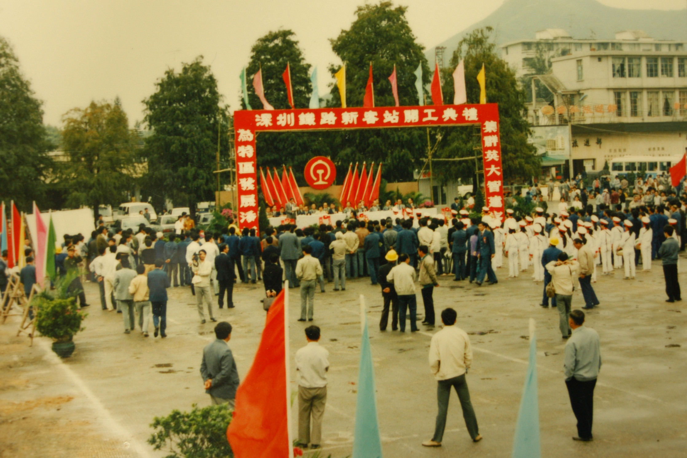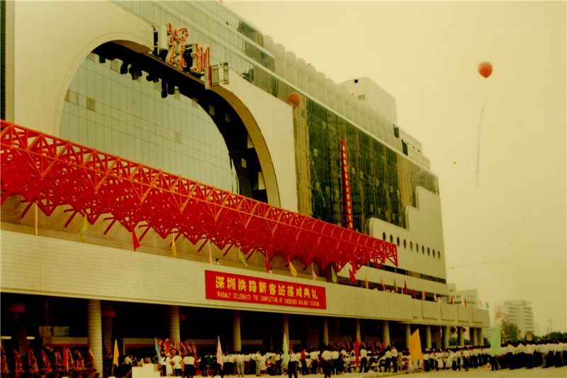 1991年10月12日,深圳新客站落成。時任國務院副總理田紀云出席典禮并剪彩。圖為典禮盛況