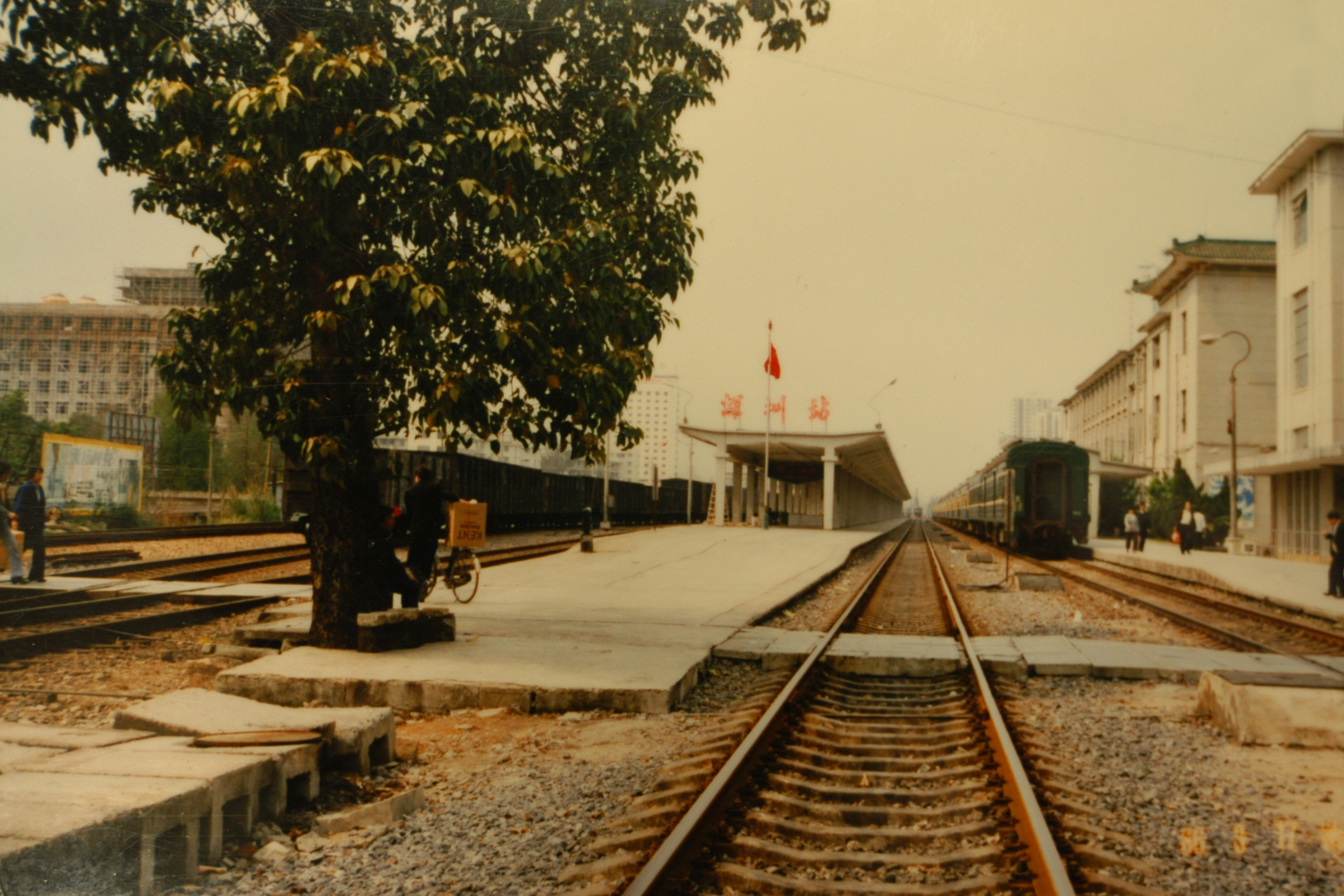 90年代,廣深線開行的列車為綠皮火車。圖中站內指揮員引導列車