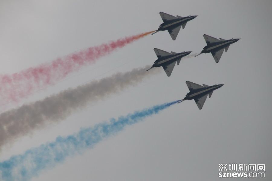 “八一”飛行表演隊(duì)的隊(duì)員則駕駛殲-10,展示了單機(jī)特技表演、六機(jī)編隊(duì)通場……戰(zhàn)機(jī)拉著彩煙,為觀眾帶來精彩的空中芭蕾。