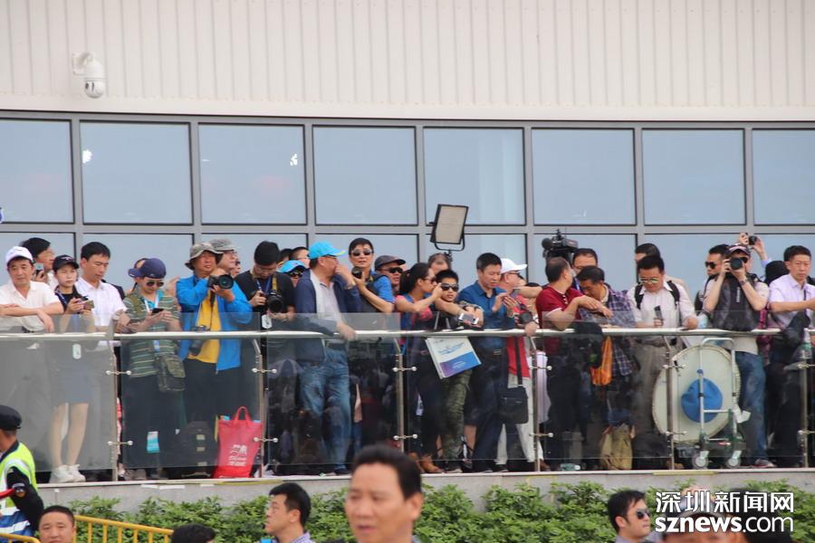 占據(jù)有利位置準(zhǔn)備拍攝飛行表演的參觀(guān)者