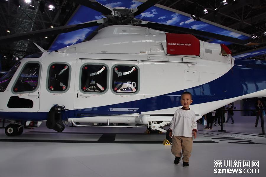 靜態(tài)展示館內(nèi)的直升機和萌娃