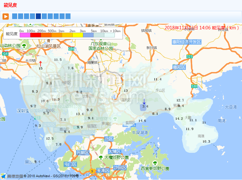 市氣象局發(fā)布能見(jiàn)度實(shí)況(數(shù)據(jù)更新于11月13日14:06)