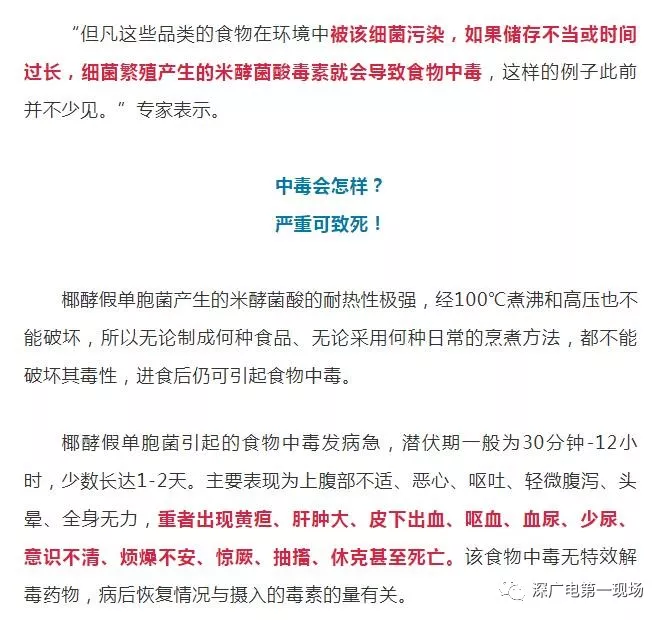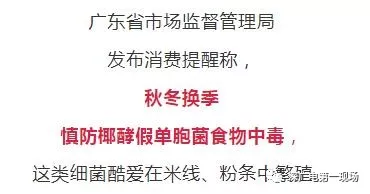 市場監(jiān)督管理局專家介紹,此季椰酵假單胞菌最易繁殖,尤其容易在三大類食品中繁殖,包括: