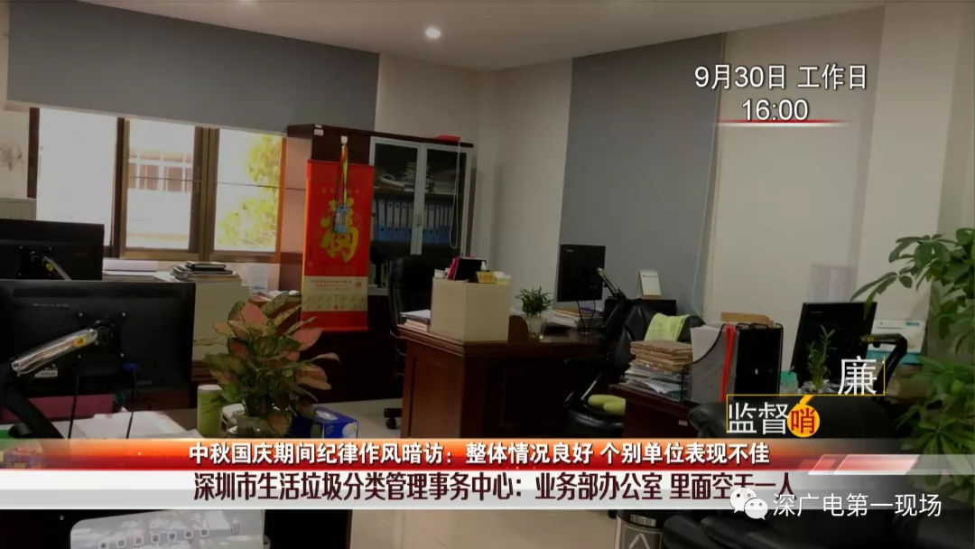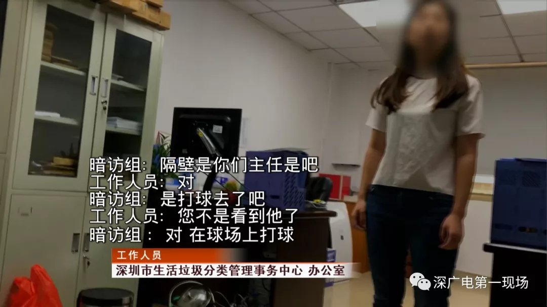 看到該單位工作作風(fēng)如此渙散,暗訪組成員繼續(xù)對(duì)另外一棟高層辦公樓展開暗訪檢查。下午4點(diǎn)03分,暗訪組成員剛進(jìn)入二樓——深圳市生活垃圾處理監(jiān)管中心辦公區(qū)域,就聽(tīng)到有兩名男性工作人員招呼打掃衛(wèi)生的清潔人員幫忙整理辦公室,而這兩人背著包,徑直離開辦公大樓。