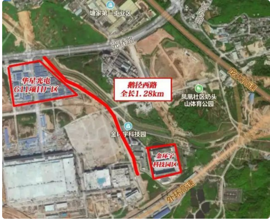 鵝徑西路位于光明區(qū)高新技術產業(yè)園區(qū)西片區(qū)內,北起光僑路,沿華星光電 G11項目廠區(qū)東側由北向南布設,設計終點與長鳳路(規(guī)劃中)相交,整體呈南北走向。全長1.28km,是一條城市支路,設計速度20km/h,雙向兩車道。目前,鵝徑西路全部完成機動車道、人行道、綠化、路燈、交通標牌標線,道路通行后方便高新技術產業(yè)園片區(qū)居民和企業(yè)出行。在金環(huán)宇科技園區(qū)上班的小伙伴,以后直接從光僑路轉到鵝徑西路就能到公司,全長1.28公里,上班方便多了。