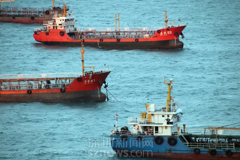 從相思嶺酒店房間陽臺拍到的外伶仃海域上的船(攝于2018年11月22日清晨)