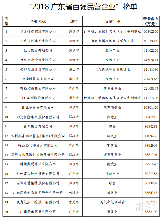 近日,廣東民企百強榜出爐!