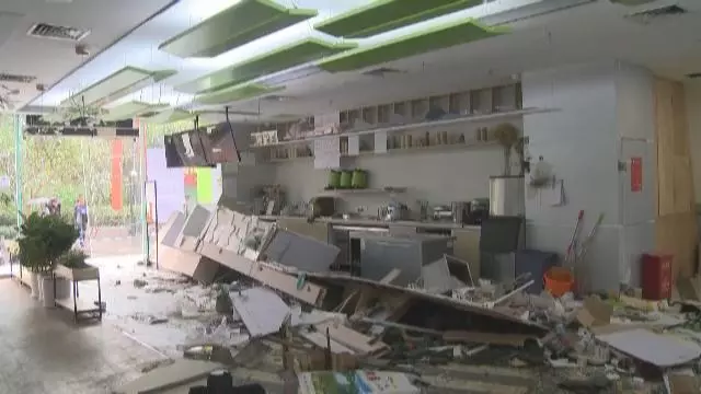 今天上午,記者來到該家飲品店,此時,店里是一片狼藉,玻璃碎片散落一地,飲品店四周也拉起了警戒線。
