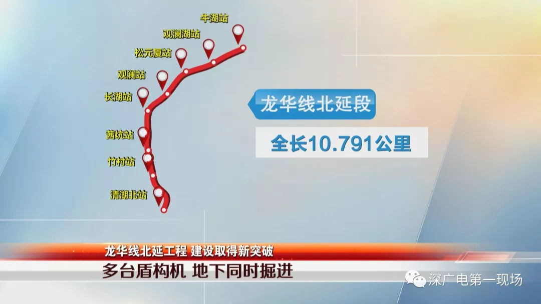 龍華線北延段工程線路,由目前龍華線終點站清湖站引出,由南至北依次沿和平路、觀瀾大道、高爾夫大道敷設,沿途設有清湖北站、竹村站、茜坑站、觀瀾湖站、牛湖站等共8個車站,全長10.7公里,目前其他車站和區(qū)間的建設也在加緊推進。