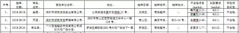 3份蔬菜不合格