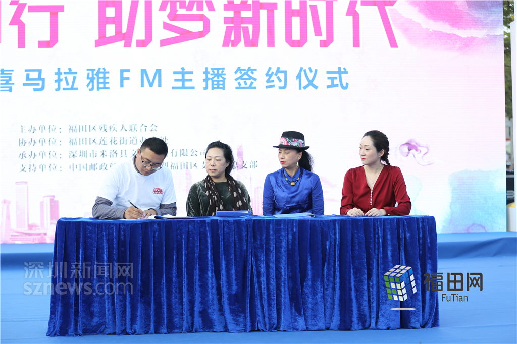 喜馬拉雅FM相關(guān)負(fù)責(zé)人現(xiàn)場與福田殘疾人網(wǎng)絡(luò)主播進行簽約。
