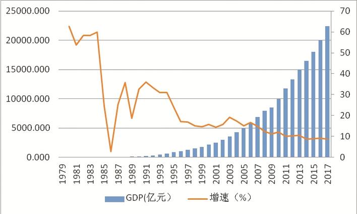 1979-2017年深圳市GDP增長(zhǎng)軌跡。