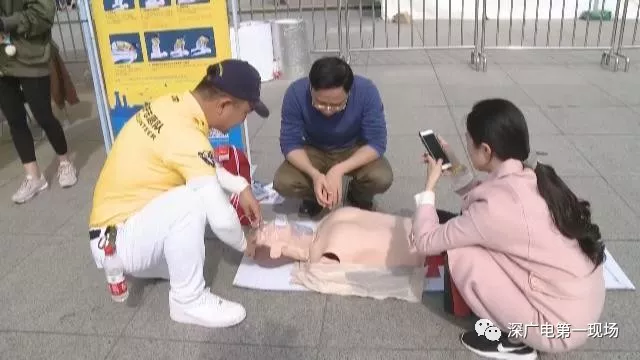 在市民中心廣場的另一側(cè),還有賽場醫(yī)療救援志愿者,在地面上擺出模型,為參賽選手普及心肺復(fù)蘇等方面的急救知識。在明天賽事進行期間,多組救援團隊也將在現(xiàn)場為參賽者提供緊急救援。