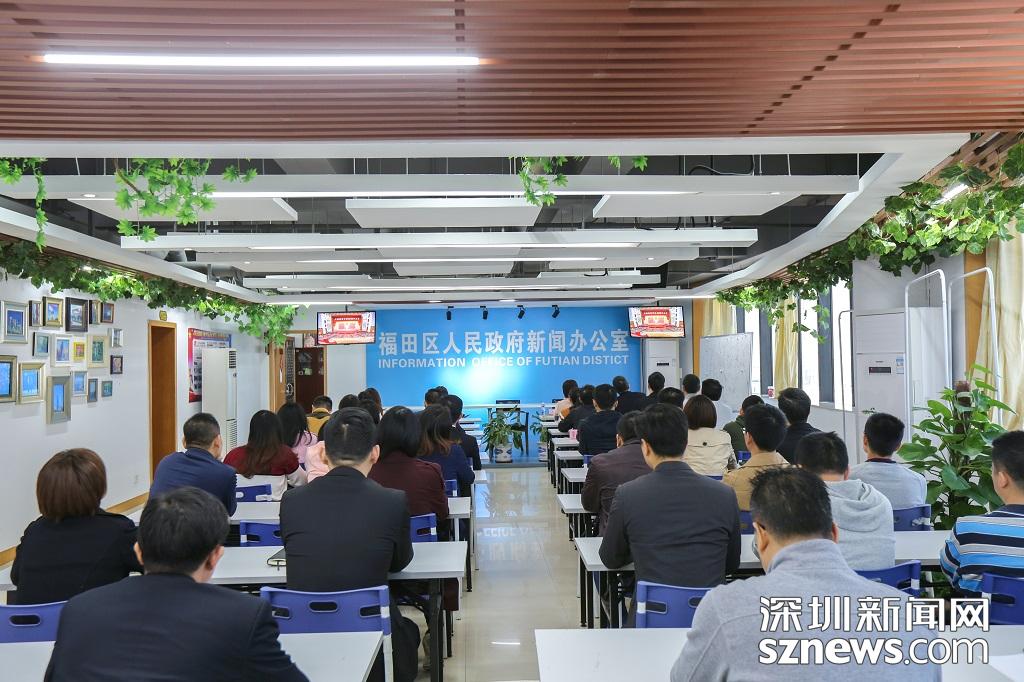 福田區(qū)委宣傳部(文體局)組織領(lǐng)導(dǎo)干部職工集中收聽收看慶祝改革開放四十周年大會(huì)。
