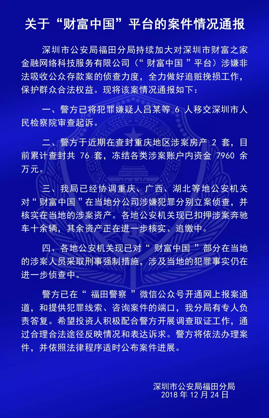 關于“合拍在線”“壹佰金融”“五星財富”“眾車在線”“財富中國”“小零錢”“錢爸爸”“合時代”和“前金融”平臺的案情通報