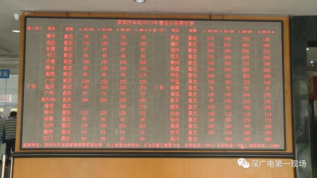 深圳市客貨運輸服務中心有限公司所屬羅湖、福田、南山、東湖、鹽田、皇崗、機場、深圳北等汽車站及所屬客運服務點將于1月5日起全面預售2019年春運的汽車票。旅客可通過微信公眾號“深圳汽車客運”、網站www.88895000.com等渠道查詢、訂購票。