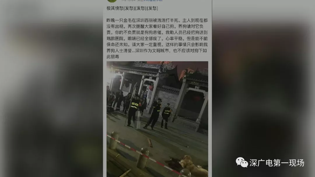 記者今天采訪時(shí)目擊者說,當(dāng)晚事發(fā)后狗主人一直不曾露面,不知道是不是流浪狗。但狗友群里有消息說,金毛犬當(dāng)時(shí)是栓了狗繩,沒帶口罩。