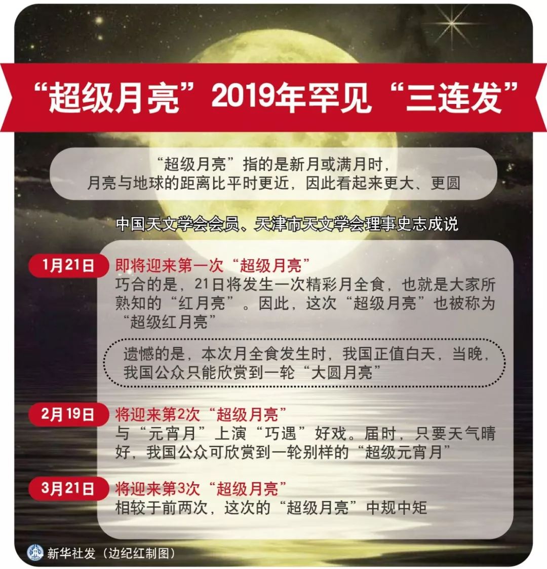 ④天文專家表示,“超級月亮”2019年會上演罕見“三連發(fā)”,時間分別是1月21日、2月19日和3月21日。在這3次當中,第2次觀賞效果最佳。