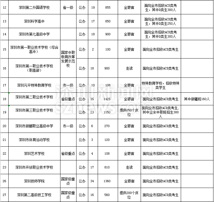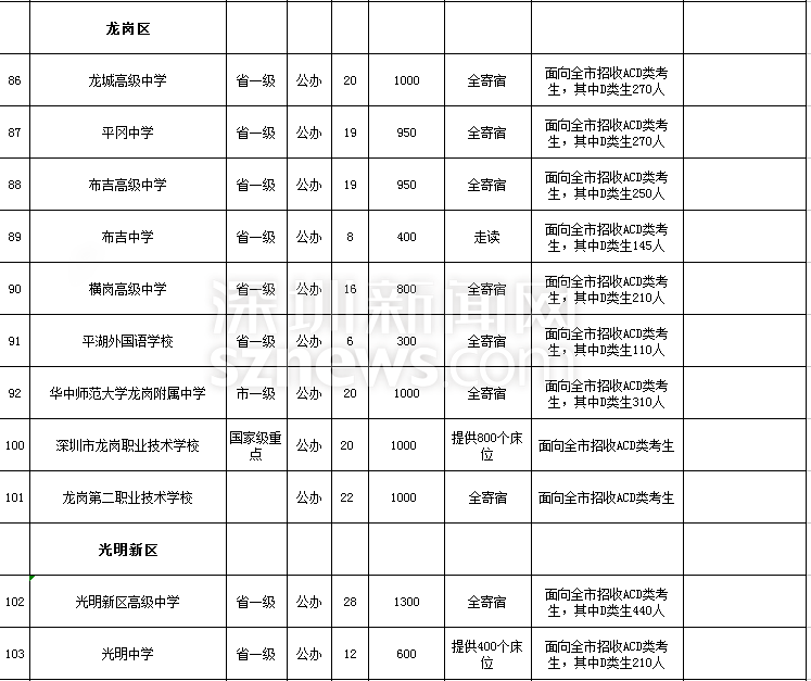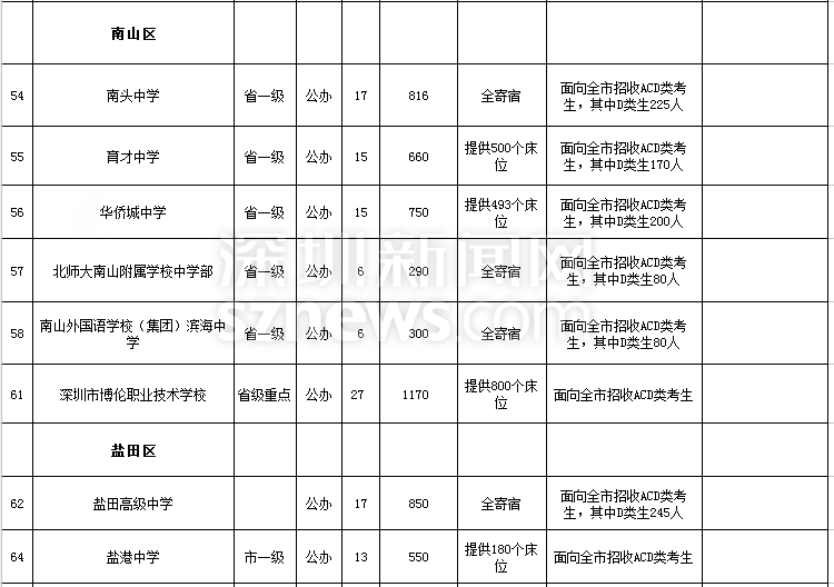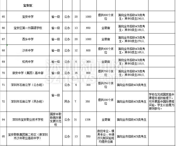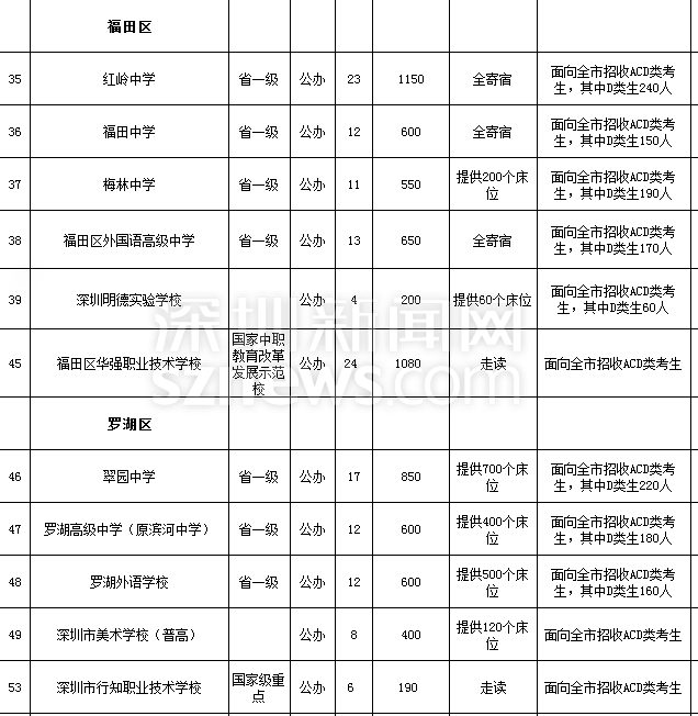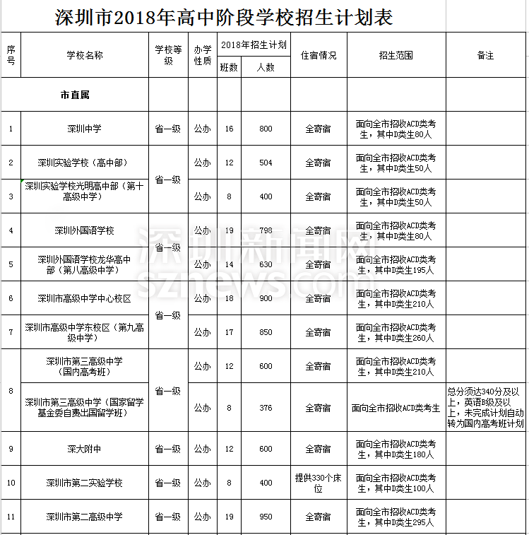 記者查閱了深圳市教育局2018年發(fā)布的高中階段學(xué)校招生計劃表。除去民辦學(xué)校,深圳共有71所公辦高中階段學(xué)校(含普高、職高)參與招生,其中普高占50所,提供34379個學(xué)位。