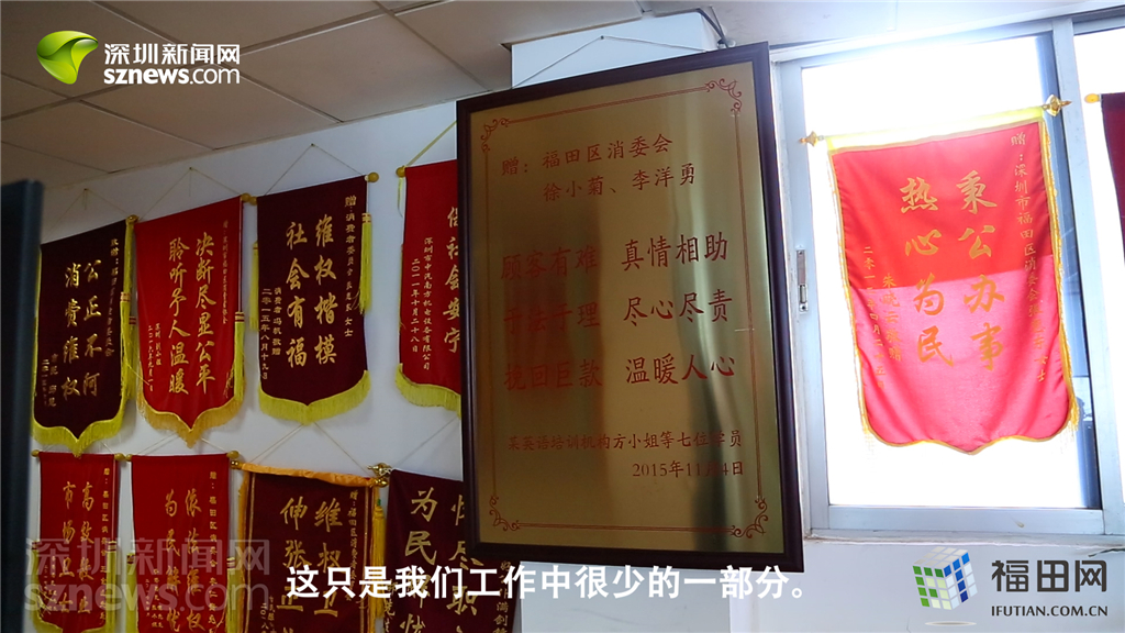 錦旗只代表福田區(qū)消委會(huì)工作中很少的一部分,12個(gè)工作人員每年處理上萬宗投訴。