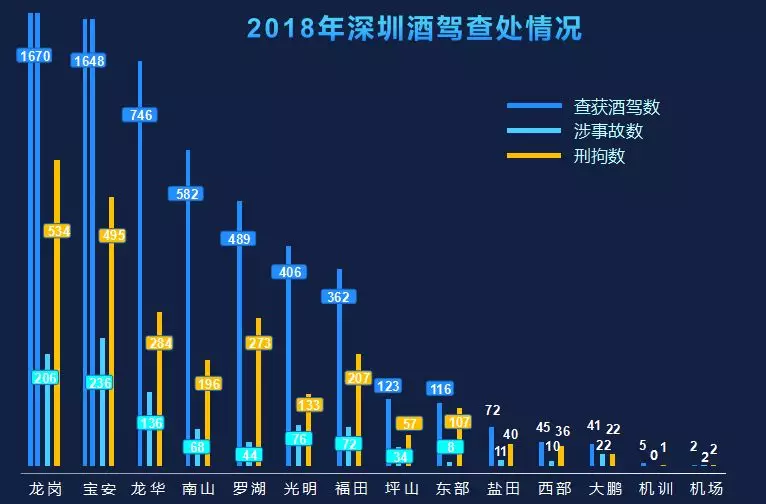 2018年深圳交警共受理危險(xiǎn)駕駛案6687宗,立案6307宗6313人,處置醉酒駕駛6313人,全部采取了刑事強(qiáng)制措施。涉及酒駕事故925宗,占總數(shù)的14.65%。此外,2018年辦理阻礙執(zhí)法案85宗89人,行政拘留74人,教育警告15人;辦理妨害公務(wù)案7宗,刑事拘留7人。