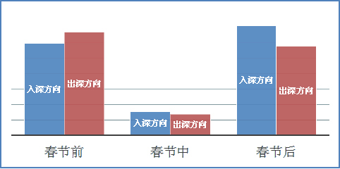 根據(jù)往年春節(jié)出深道路流量統(tǒng)計,每日10時前后出深道路壓力開始上升,狀況持續(xù)到17時左右。