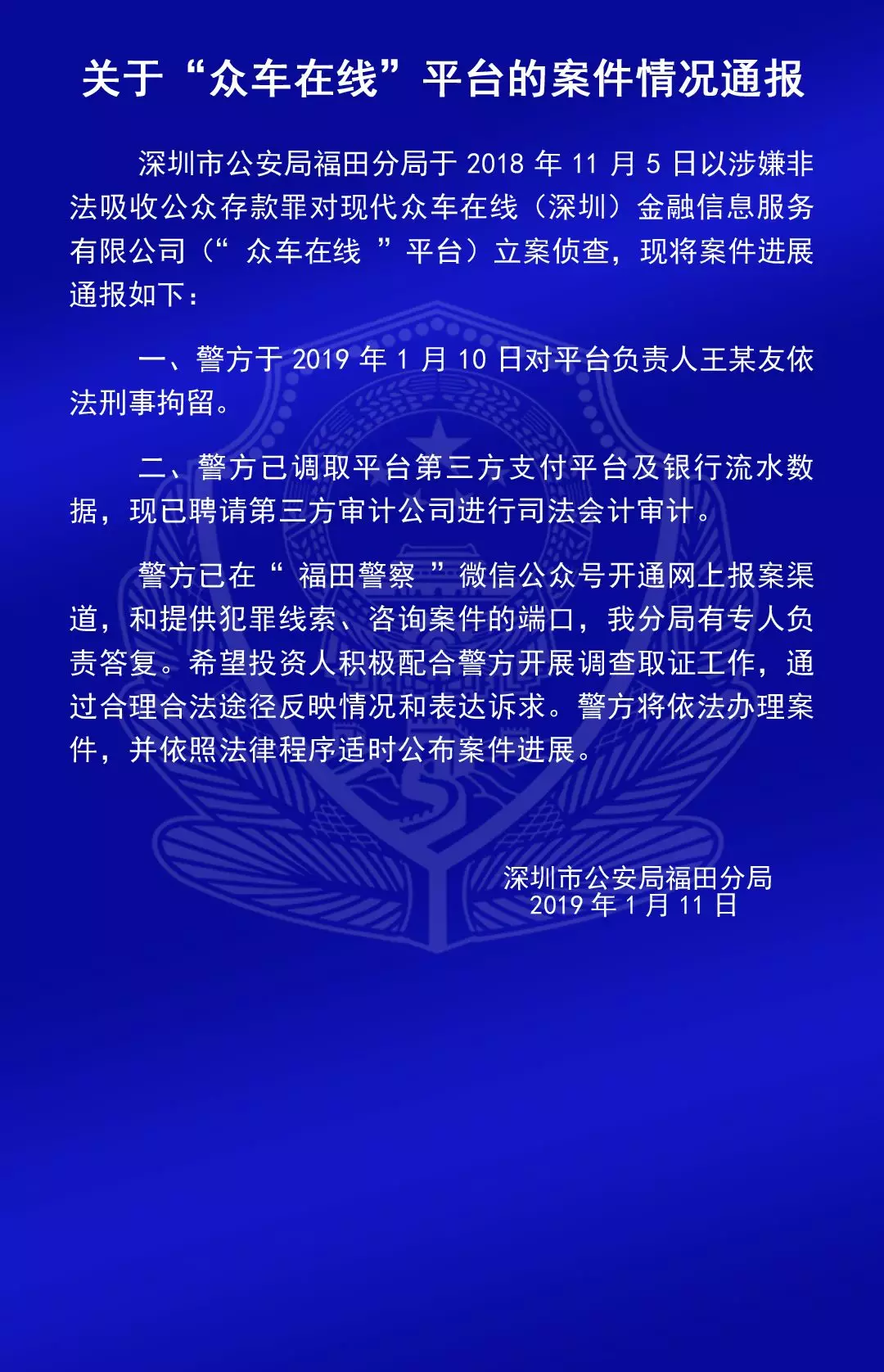 福田公安通報六家平臺涉嫌非法吸收公眾存款案的情況