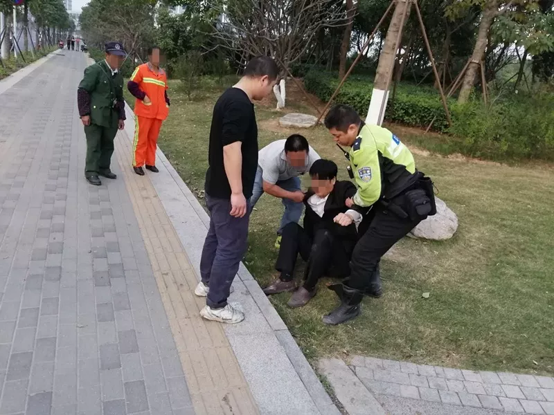 2 五旬大叔摔傷腳,鐵騎蜀黍攙扶走