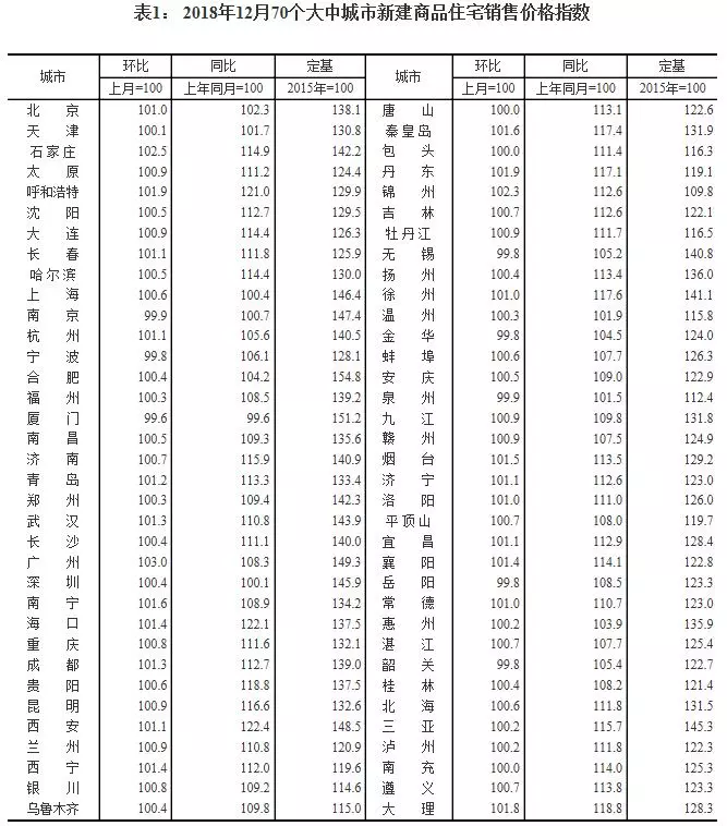 16日,國家統(tǒng)計(jì)局公布的“2018年12月份70個(gè)大中城市商品住宅銷售價(jià)格變動(dòng)情況”顯示,雖然一線城市新房價(jià)格年底有所上漲,但二三線城市房價(jià)保持穩(wěn)定。