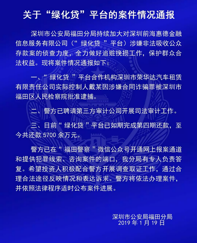 關(guān)于“綠化貸”平臺的案件情況通報