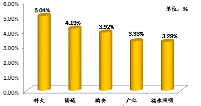 ▲2018年第四季度駕校學(xué)員點(diǎn)評(píng)占率比前五名