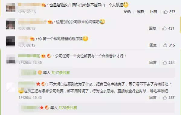 對(duì)此,網(wǎng)友紛紛直呼:什么仇什么怨?這是要有天大的仇才能干出這種事吧。如果該公司創(chuàng)始人說(shuō)的都是實(shí)情,那么這個(gè)人毫無(wú)職業(yè)道德可言,之前就聽說(shuō)過(guò)程序員刪服務(wù)器上數(shù)據(jù)的,其他公司也要引以為戒,如果再出現(xiàn)類似事件如何應(yīng)對(duì)。
