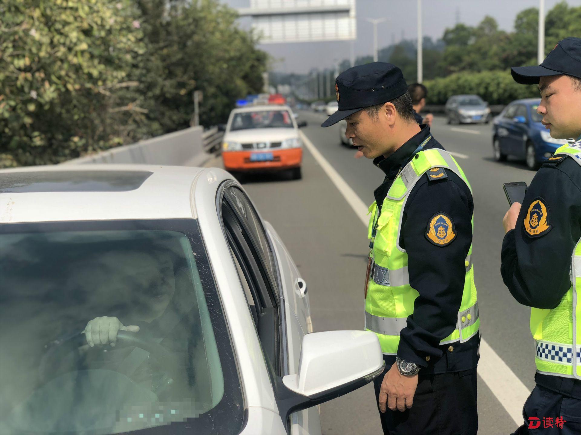 11:20,南光高速光明路段路邊應(yīng)急車道上,有一輛小車??俊qR明海和開車的老林一起下車,走過去詢問。原來這輛小車爆胎了,正在等待維修廠送備胎過來。馬明海讓車內(nèi)司機(jī)和乘客趕緊下車,盡量往路邊站?!耙郧案咚俟飞铣鲞^這樣的事故,小車拋錨后,車主沒有下車,結(jié)果后面的車輛沒注意撞上來,車內(nèi)的人都沒了?!崩狭盅a(bǔ)充道:“下車后也不能站在車前或車后,這些位置都很危險(xiǎn),最好站到高速護(hù)欄的外面去等待救援。”看到拋錨車輛后面只放了一個(gè)很小的三角架,馬明?;氐窖矙z車上,拿下來兩個(gè)反光錐放到小車后:“一定要讓其他車輛能很遠(yuǎn)就看到這里有車輛???,千萬不能發(fā)生二次事故?!?/p>