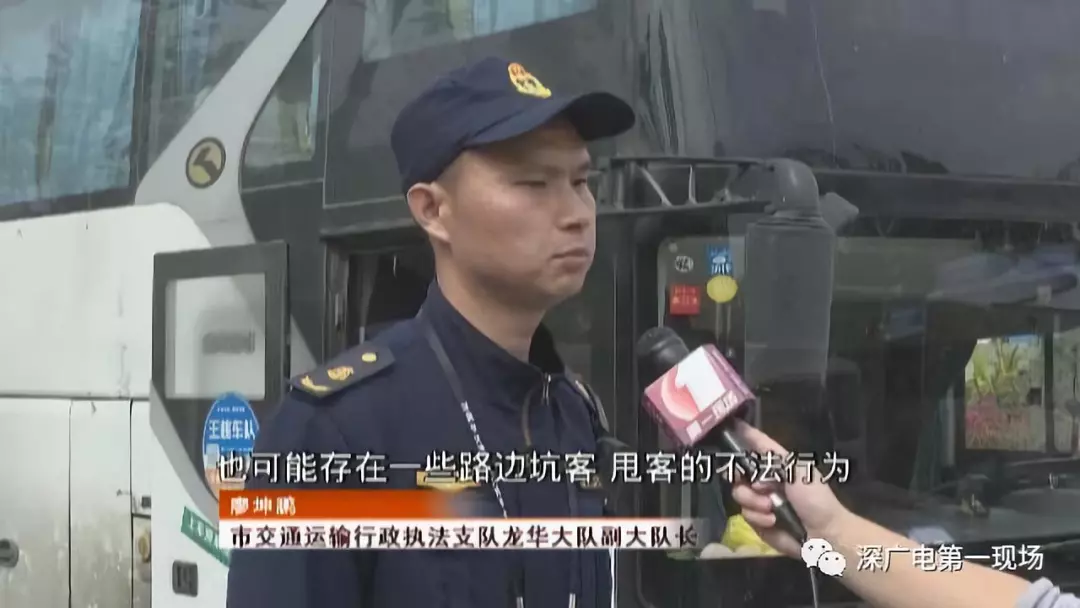 隨后,記者將大巴車非法營運的情況反映給深圳交通運輸行政執(zhí)法支隊龍華大隊。很快,執(zhí)法人員來到了現(xiàn)場。下午1點30分左右,20多名乘客上了一輛大巴后駛出了集合點,執(zhí)法人員立即采取行動。