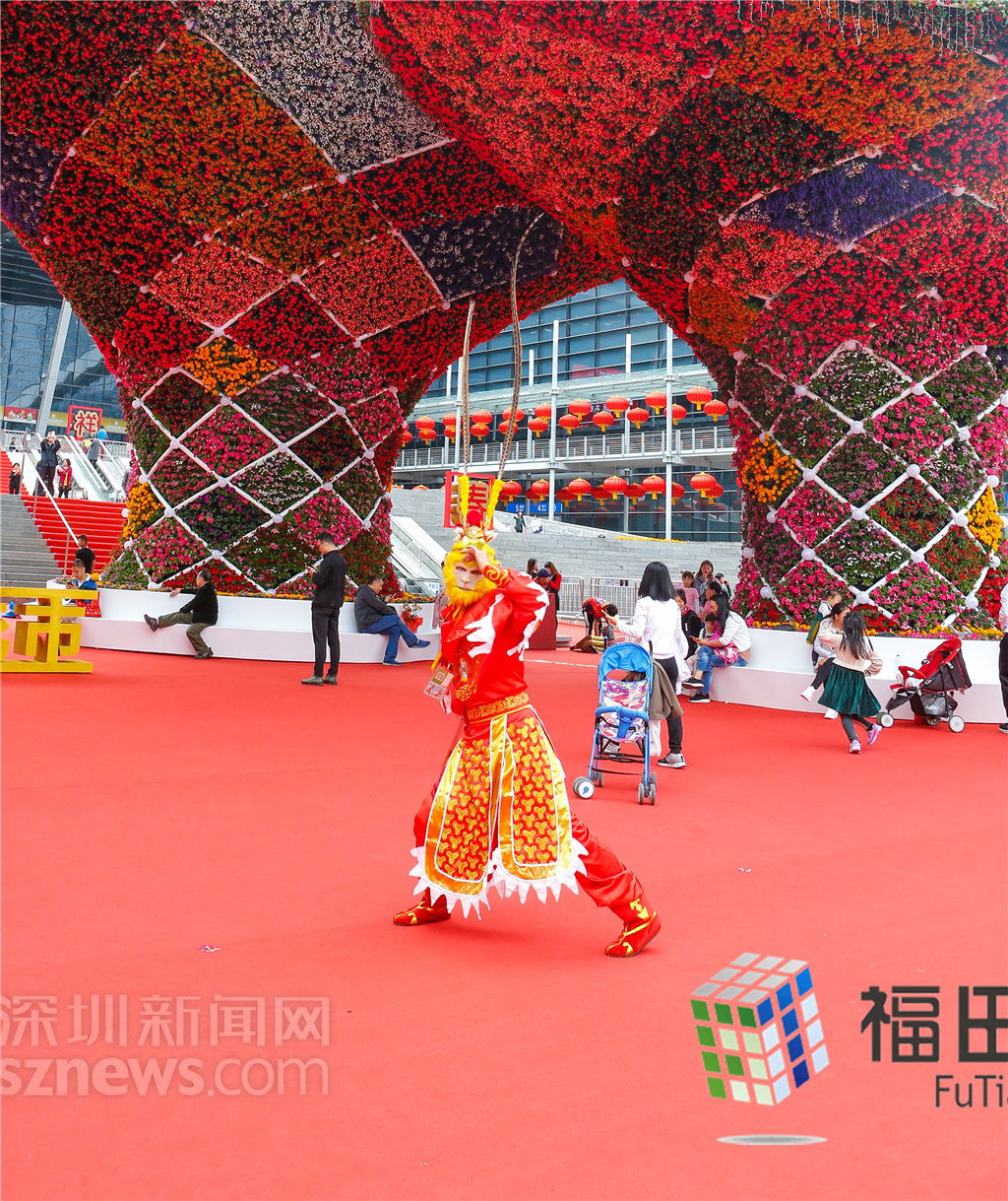 熱鬧的花市也吸引了“猴哥”過來捧場(chǎng)。