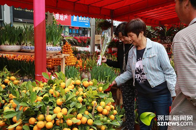 記者看到,花市現(xiàn)場各類鮮花嬌艷欲滴,有吉祥如意的年桔、大富大貴的黃金果、花姿優(yōu)美的蝴蝶蘭、嬌艷欲滴的郁金香等。各類年貨商品琳瑯滿目,金魚、長壽龜也為花市增添了不少生氣。不少市民帶著家人朋友一起逛花市,精心挑選年花年桔和春聯(lián)年貨。