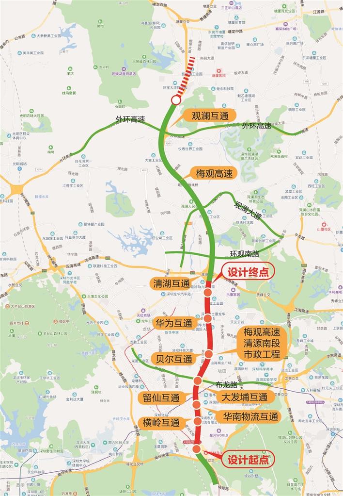 梅觀高速清湖南段改造示意圖