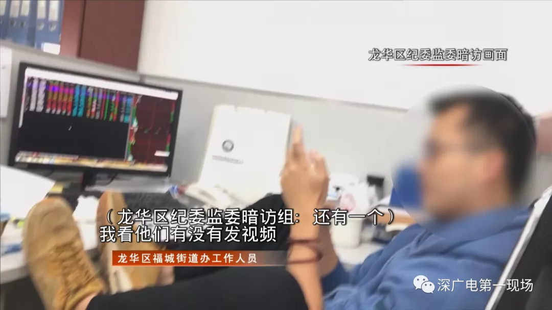 但暗訪組在調(diào)查中發(fā)現(xiàn),福城街道建筑工程事務(wù)中心有一名工作人員上班時間把腿翹到桌子上玩手機、看股票。