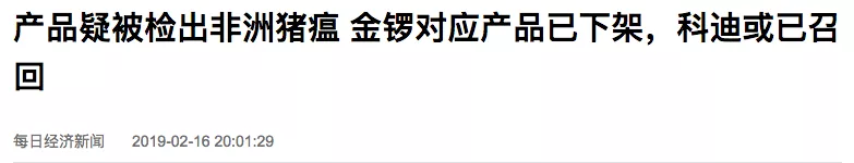 金鑼對應產(chǎn)品已下架,科迪或已召回